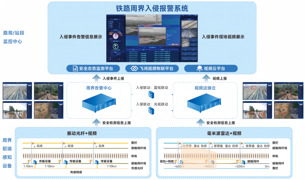铁路周界入侵报警系统由kdpay钱包官网与华为公司联合打造,采用kdpay钱包官网视频云一体化平台与华为公司边端入侵检测算法结合,前端采用光纤传感、微波雷达技术,构建端边云协同、全网智能化的方案,实现全天候、长覆善的实时目标识别、告警,以多维度融合模式识别算法和深度神经抗干扰算法,保证了“0”漏报和低误报率,具有高可用性,节省无效复核时间,可应用于铁路沿线人员及大型动物入侵监测、自然灾害易发区域监测、桥梁隧道基础设施监测等场景。